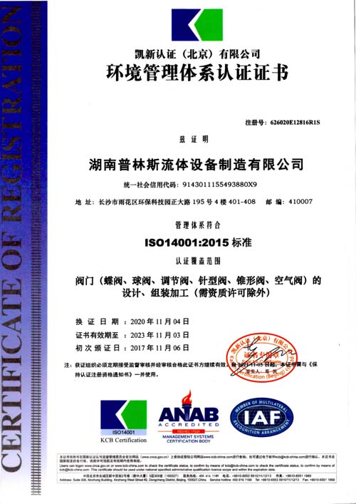 環(huán)境管理體系認證證書